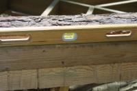 We used leveled 2 x 4s as a guide for the chain saw. It did not have to be perfect, just enough to hold the large log in place as we put up the roof this summer.